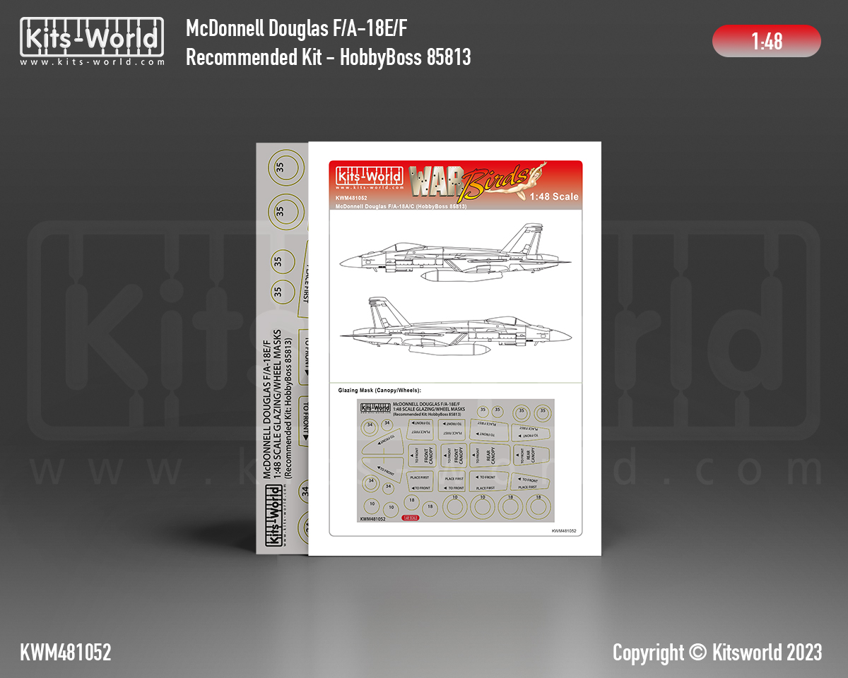 Kits-World - 1/48 Boeing F/A-18E or F/A-18F Hornet wheels and canopy frame paint mask for Hobby Boss