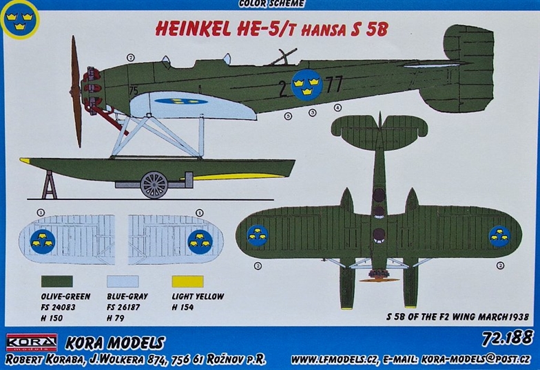 KORA MODEL - 1/72 Heinkel He-5/T Hansa S5B Swedish Floatplane