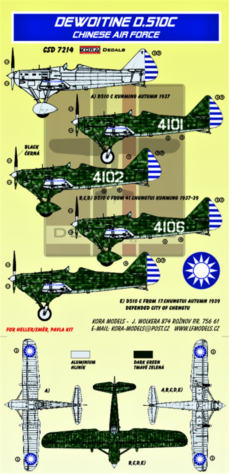 KORA MODEL - 1/72 Dewoitine D.510C Detail set&decal (China)
