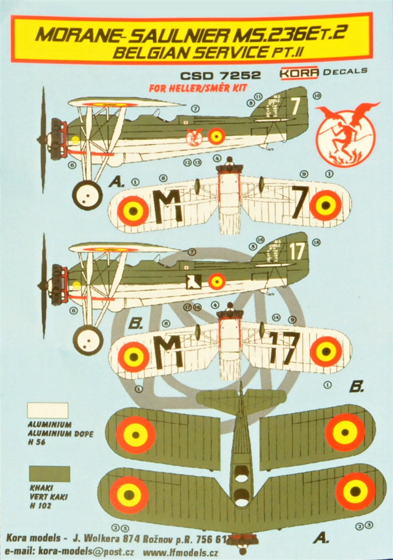 Kora Model - 1/72 MS 236 ET.2 Belgium conversion set II and decal (for Heller and Smer kits)