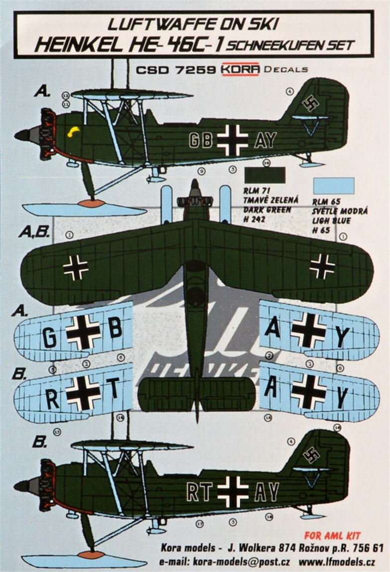 Kora Model - 1/72 Heinkel He-46C-1 Ski (for AML kits)