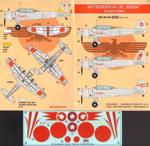 KORA MODEL - 1/48 Decals Mitsubishi Ki-51 SONIA (Over China)