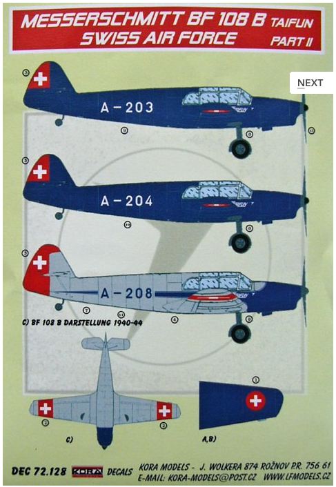 Kora Model - 1/72 Decals Bf 108 B Taifun Part II. (Swiss AF)