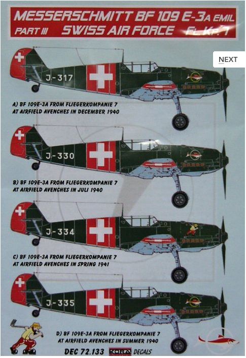 Kora Model - 1/72 Decals Bf 109 E-3A Emil Part III (Swiss AF)
