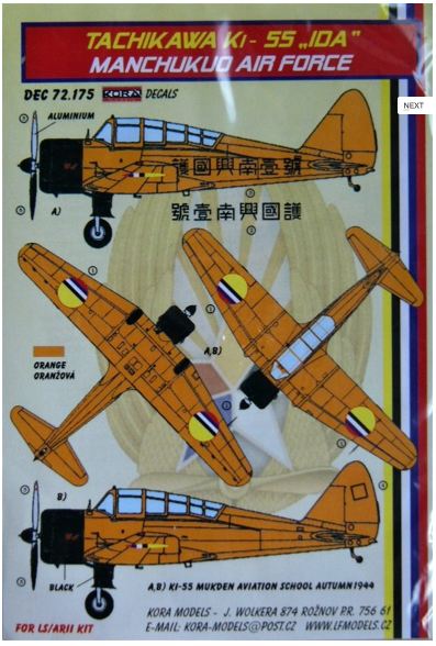 Kora Model - 1/72 Decals Ki-55 IDA (Manchukuo Air Force)
