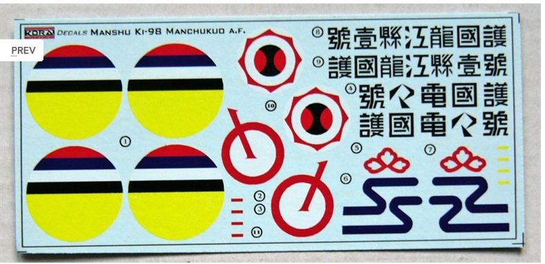 Kora Model - 1/72 Decals Ki-98 (Manchukuo Air Force)