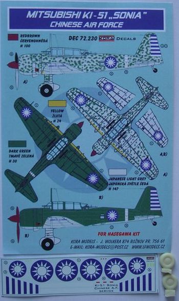 Kora Model - 1/72 Scale Mitsubishi Ki-51 'SONIA' Chinese Air Force (for Hasegawa kits)