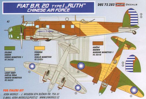 KORA MODEL - 1/72 Decals Fiat BR.20 Type I RUTH (Chinese AF)