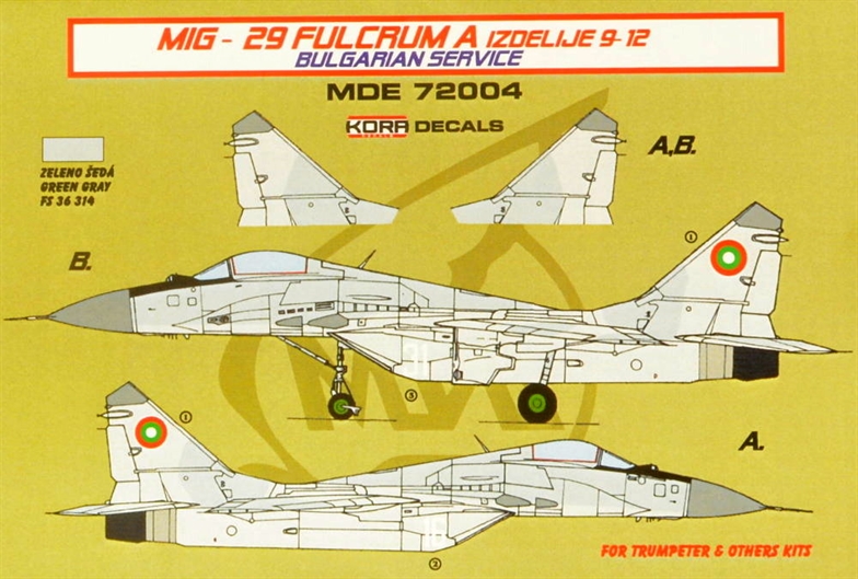 KORA MODEL - 1/72 Decals MiG-29 Fulcrum 9-12 Bulgarian service