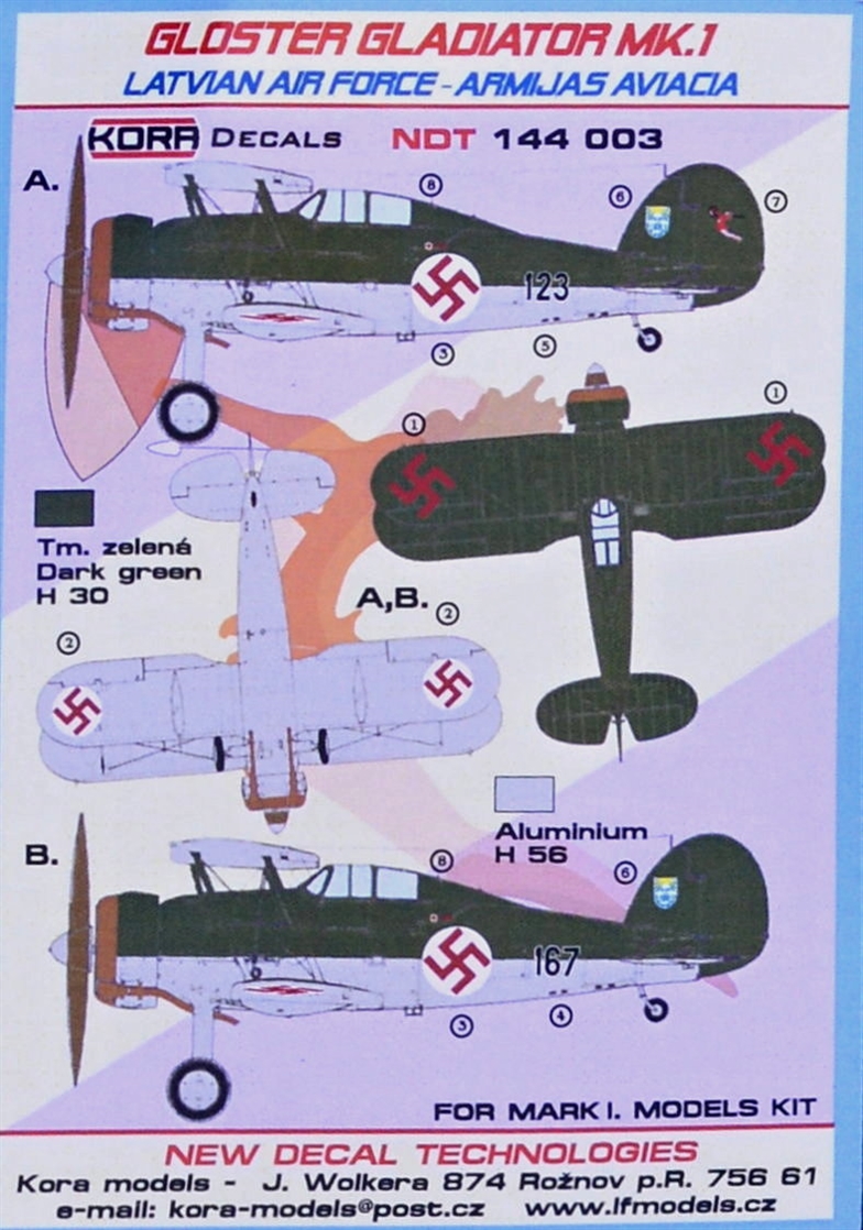 KORA MODEL - 1/144 Decals Gloster Gladiator Mk.I Latvian AF