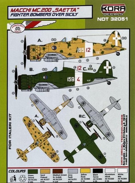 KORA MODEL - 1/32 Decals MC.200 Fighter Bombers over Sicily