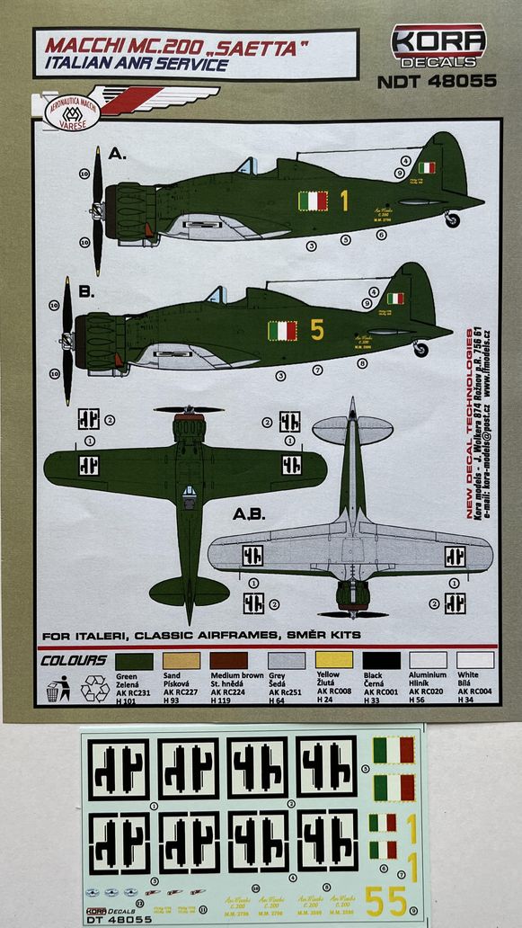 KORA MODEL - 1/48 Decals MC.200 Saetta Italian ANR Service