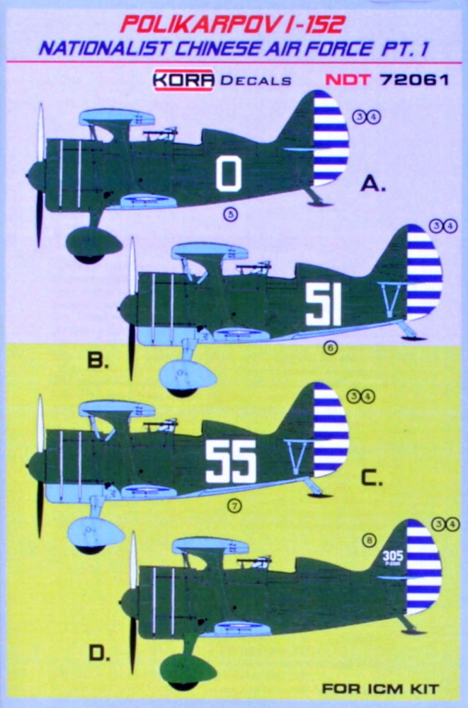 KORA MODEL - 1/72 Decals I-152 Nationalist Chinese AF part 1