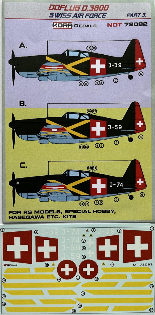 KORA MODEL - 1/72 Decals Doflug D.3800 Swiss Air Force Part 3