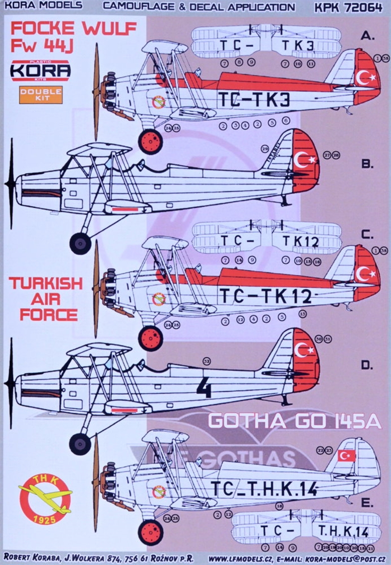 Kora Model - 1/72 Gotha Go 145A & Focke-Wulf Fw-44J (2 in 1) Turkish Air Force
