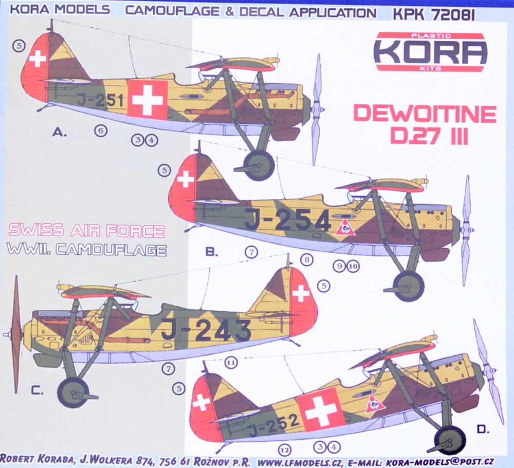 KORA MODEL - 1/72 Dewoitine D.27 III. Swiss AF WWII Camouflage