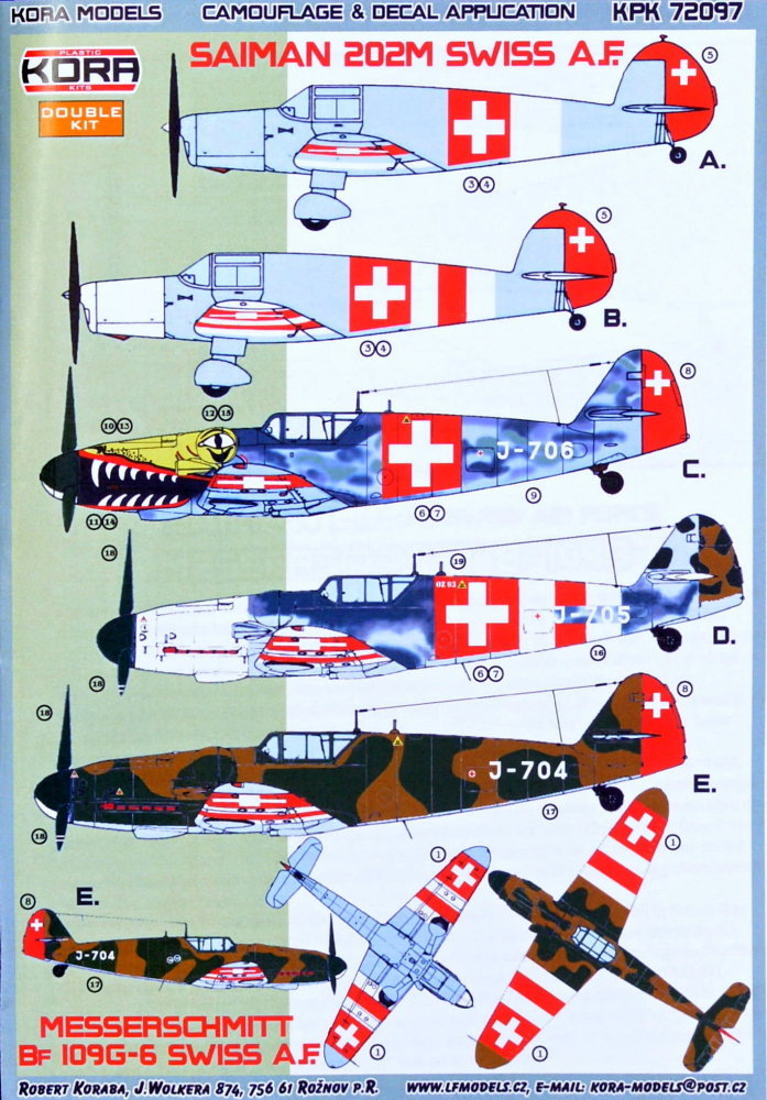 Kora Model - 1/72 Messerschmitt Bf-109G-6 and Saiman 202M Swiss Air Force - Double kit.