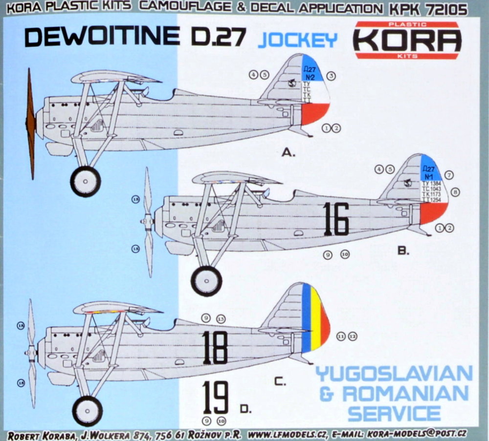 KORA MODEL - 1/72 Dewoitine D.27 Romanian & Yugoslavian Service