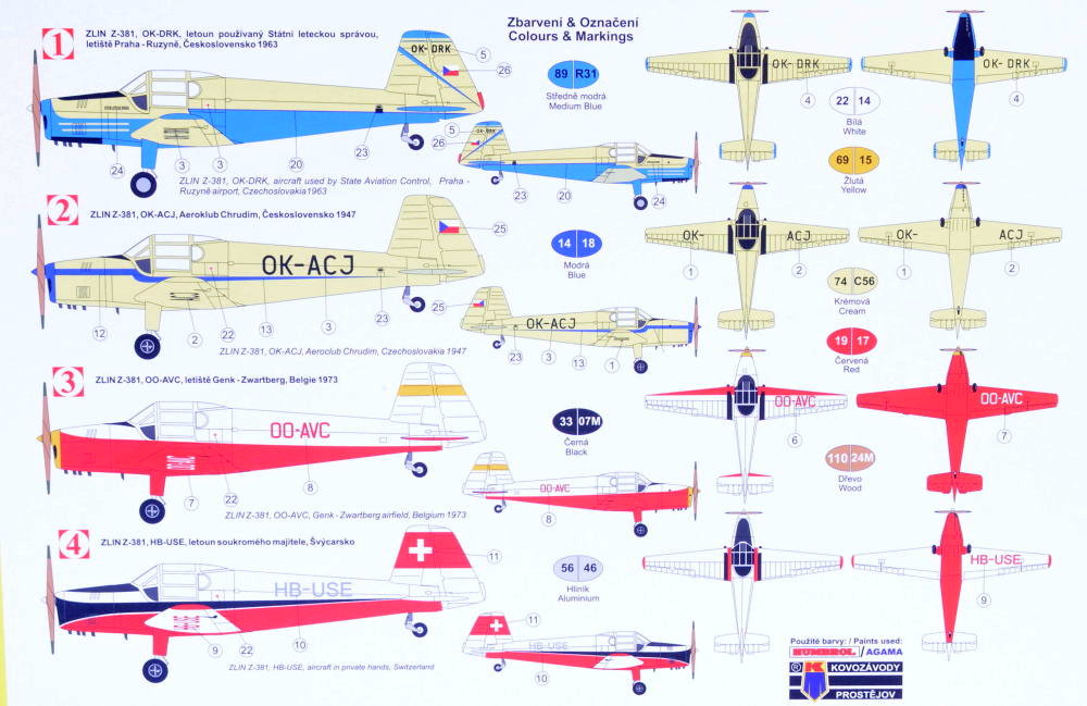 KOVOZAVODY PROSTEJOV - 1/48 Zlin Z-381 Basa (2x CZ, Belgium, Swiss)