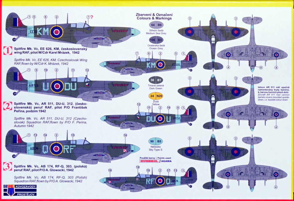 KOVOZAVODY PROSTEJOV - 1/72 Spitfire Mk.VC Allied Fighters (3x camo)