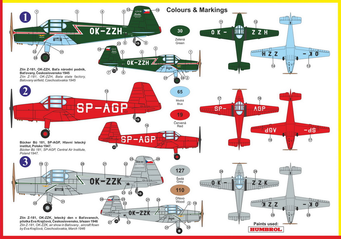 KOVOZAVODY PROSTEJOV - 1/72 Zlin Z-181 Basa (3x camo)