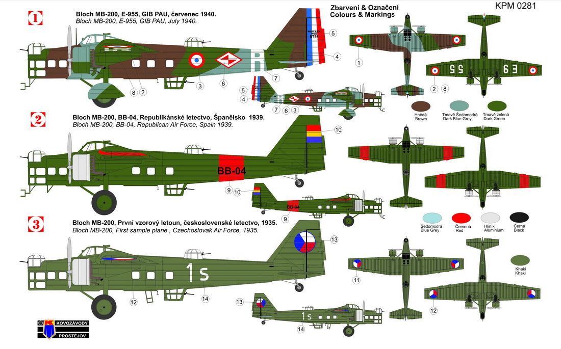 KOVOZAVODY PROSTEJOV - 1/72 Bloch MB-200 (3x camo)