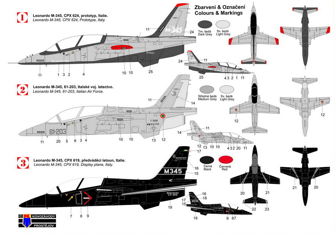 KOVOZAVODY PROSTEJOV - 1/72 Leonardo M-345 (3x camouflages)