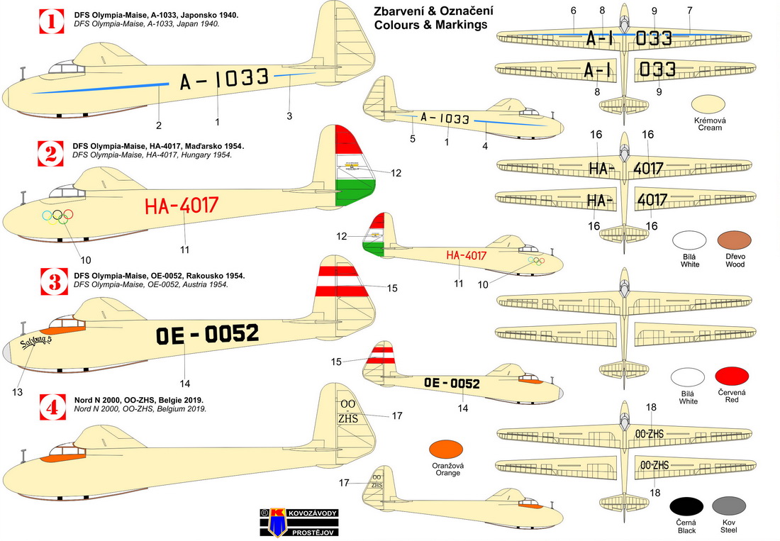 KOVOZAVODY PROSTEJOV - 1/72 DFS Olympia Silence in the sky (4x camouflages)