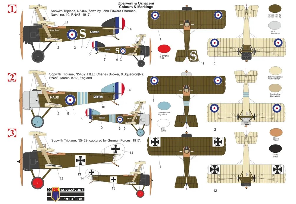 KOVOZAVODY PROSTEJOV - 1/72 Sopwith Triplane 3x camouflages
