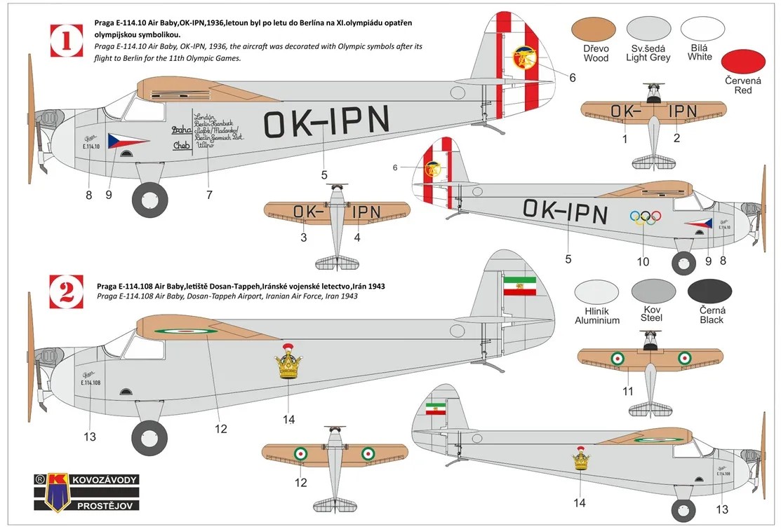 KOVOZAVODY PROSTEJOV - 1/72 Praga E-114B Air Baby 2x camouflages