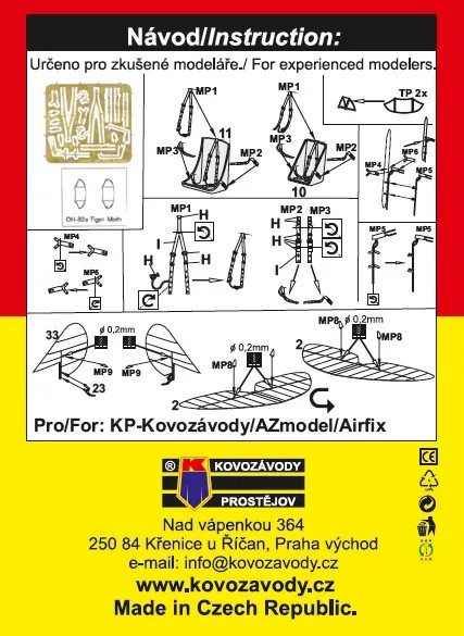 KOVOZAVODY PROSTEJOV - 1/72 D.H. 82A Tiger Moth upgrade PE set