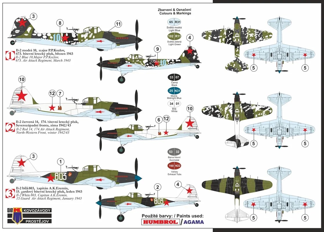KOVOZAVODY PROSTEJOV - 1/72 IL-2 Interim Gunners Stat. 3x camouflages HI-TECH