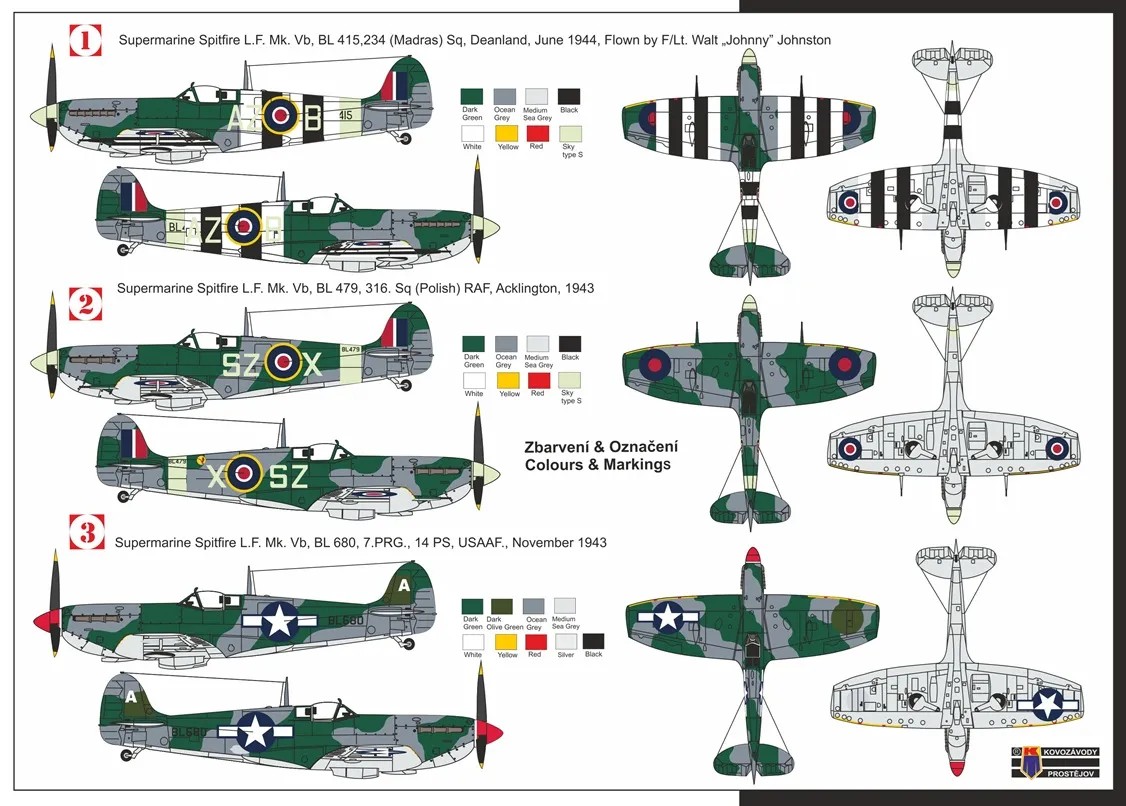 KOVOZAVODY PROSTEJOV - 1/72 Spitfire LF Mk.Vb Clipped Wing 3x camouflages