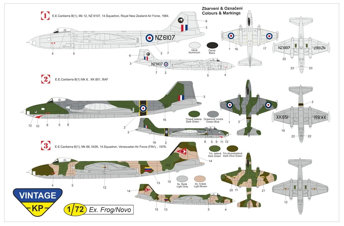 KOVOZAVODY PROSTEJOV - 1/72 Canberra BI Mk.8/12/88 ex-FROG/N. VINTAGE