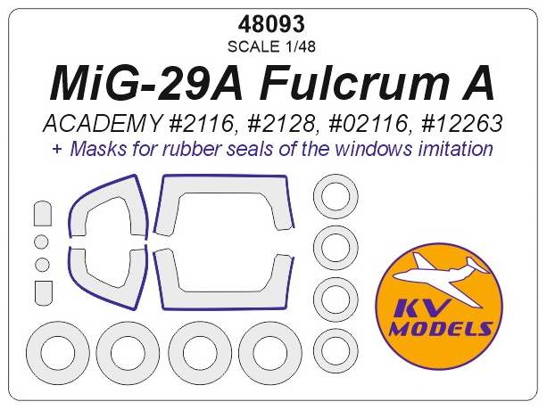 KV Decals - 1/48 Mikoyan MiG-29A Fulcrum A + wheels masks + Masks for imitation rubber seals of the windows are included for Academy kits ACA2116, ACA2128, ACA02116, ACA12263