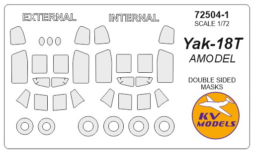KV Decals - 1/72 Yakovlev Yak-18T Double-sided and wheels masks (for A-Model kits AMU72303, AMU72303-01)
