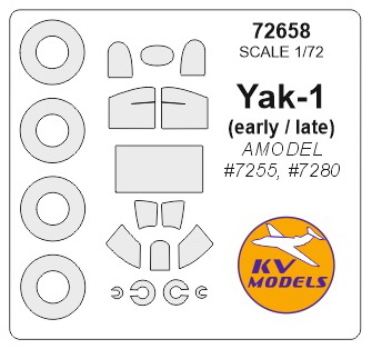 KV Decals - 1/72 Yakovlev Yak-1 + wheels masks (for A-Model kits AMU7255, AMU7280)