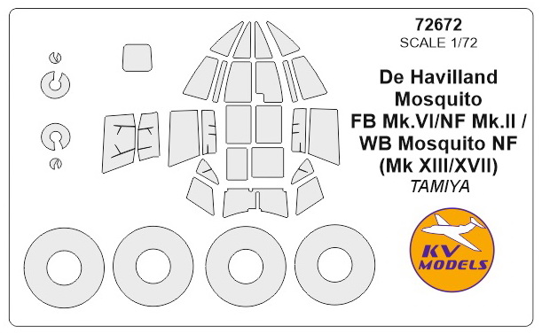 KV Decals - 1/72 De Havilland Mosquito FB Mk.VI/NF Mk.II / Wb Mosquito Nf (Mk XIII/XVII) + wheels masks(for Tamiya kits)