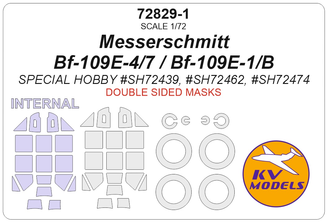 KV Decals - 1/72 Messerschmitt Bf-109E-4/7 / Bf-109E-1/B for Special Hobby PartSH72439, PartSH72462, PartSH72474 wheels and canopy frame paint mask inside and outside