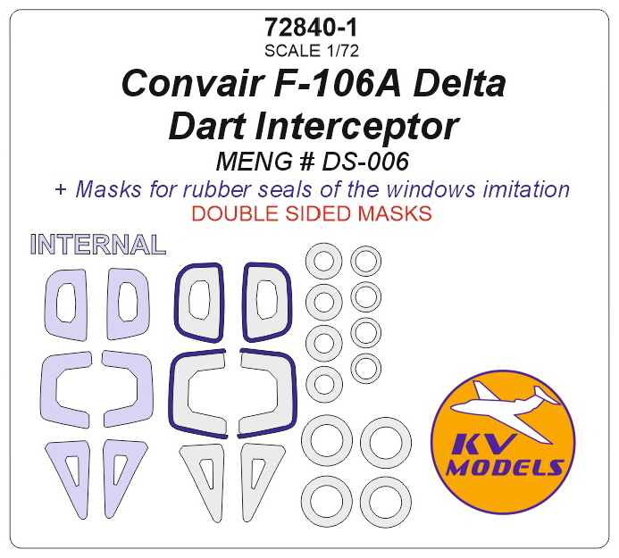 KV Decals - 1/72 Convair F-106A Delta Dart Interceptor + masks for wheels + Masks for rubber seals imitation of the windows are included for Meng kit MNG-DS-006