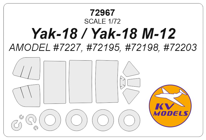 KV Decals - 1/72 Yakovlev Yak-18 / Yak-18 M-12 (for A-Model AMU7227, AMU72195, AMU72198, AMU72203) + wheels masks
