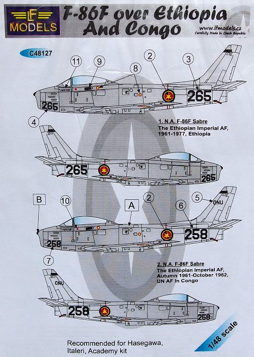 LF MODEL - 1/48 Decals F-86F over Ethiopia (HAS/ITAL/ACAD)