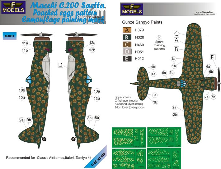 LF Model - 1/48 Macchi C.200 Saetta Poached eggs pattern Camouflage pattern Paint mask (for Classic Airframe, Italeri and Tamiya kits)