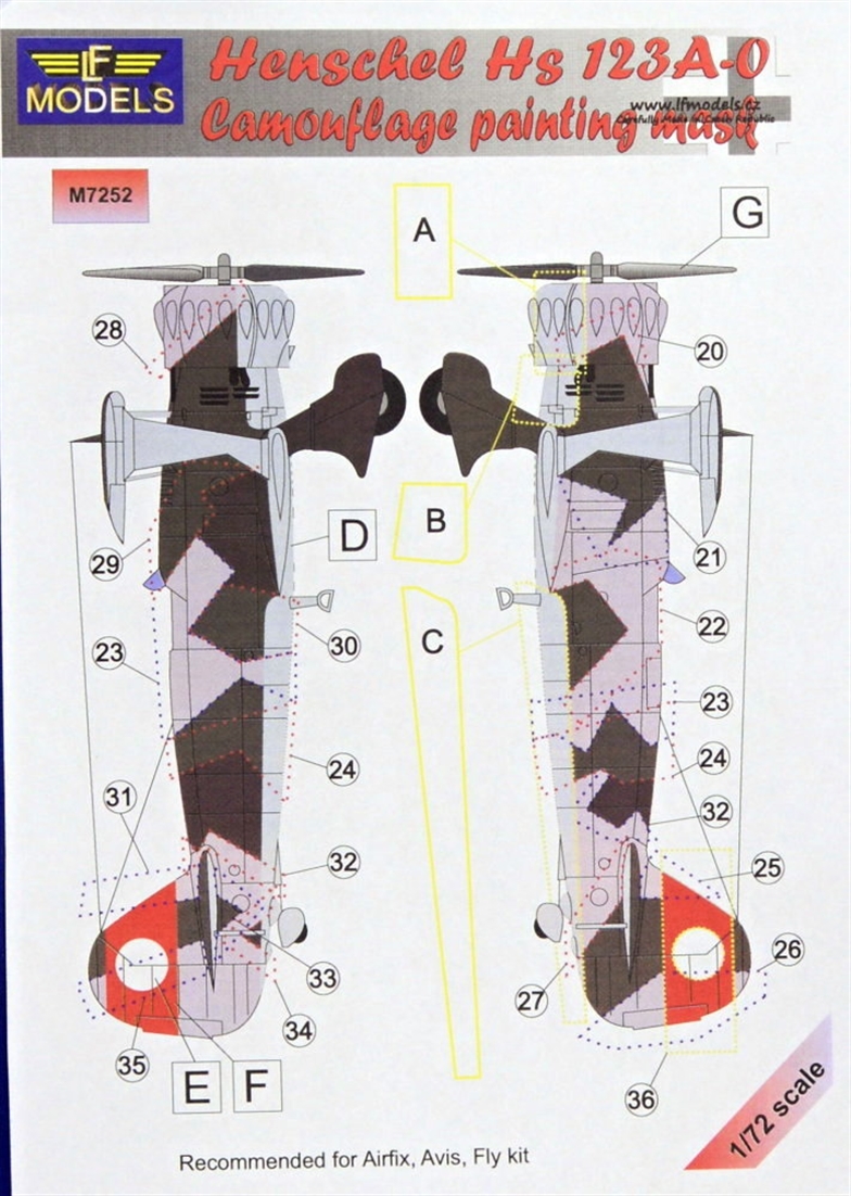 LF Model - 1/72 Henschel Hs-123A-0 Camouflage Painting Mask (for A Model, Airfix, Avis, FLY and ICM kits)[Hs-123A-1 Hs-123B-1 Hs-123C]
