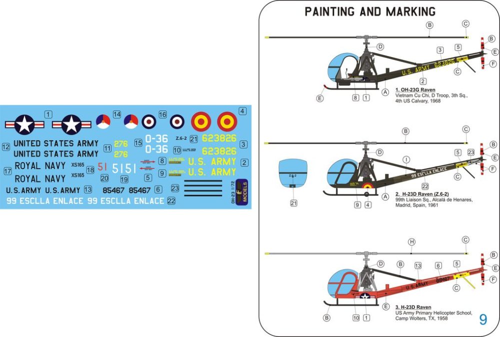 1/48 OH-23 Raven in Military service 4x camouflages