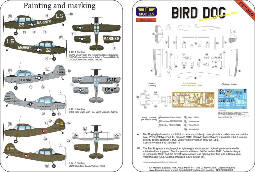 LF MODEL - 1/72 Bird Dog Korean/Vietnam War 6x camouflages