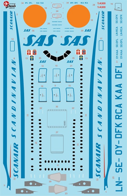 1/200 decals of Sas Airbus A300 in the first colour scheme