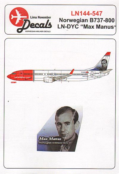Lima November - 1/72 Scale Norwegian Boeing 737-800 LN-DYC "MAX MANUS"