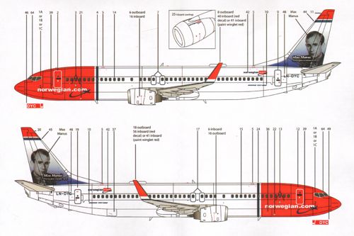 1/72 Scale Norwegian Boeing 737-800 LN-DYC "MAX MANUS"