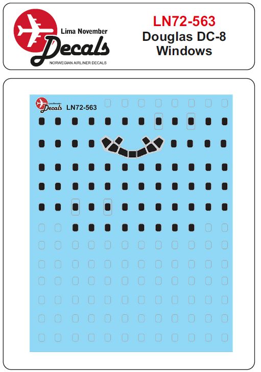 Lima November - Douglas DC-8 windows in 1/72. Enough windows for any DC-8 model (for Mach 2 and Aim Transport Wings kits)